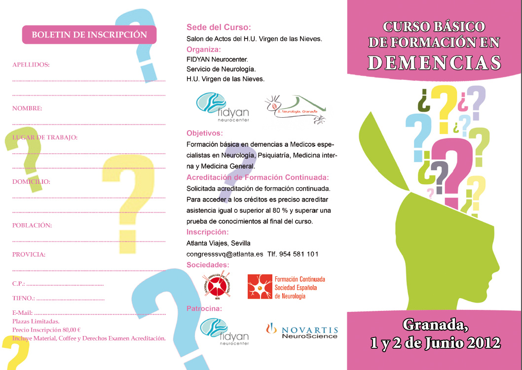 El viernes 1 y el sábado 2 de junio se celebrará un CURSO BÁSICO DE FORMACIÓN EN DEMENCIAS en la ciudad de Granada. El curso está organizado por FIDYAN Neurocenter y el Servicio de Neurología del H.U. Virgen de las Nieves.