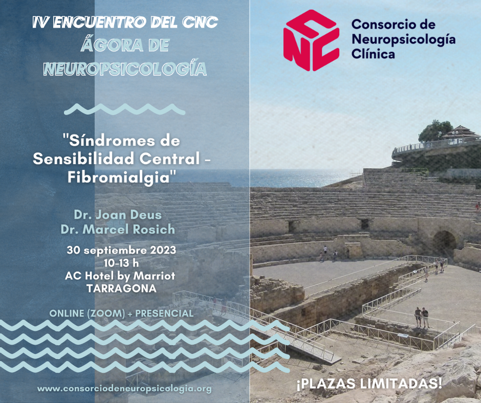 El próximo sábado 30 de septiembre nos desplazaremos a Tarragona para celebrar nuestro IV encuentro de Neuropsicología donde trataremos los «Síndromes de Sensibilidad Central-Fibromialgia».